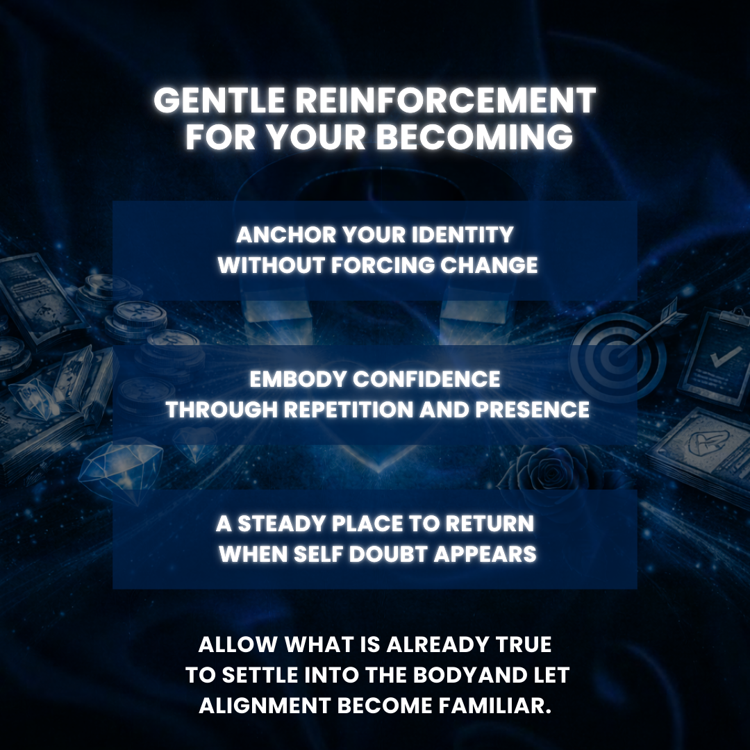 This affirmation meditation album was created to help you anchor confidence, magnetism, and clarity — not through force or hype, but through repetition, presence, and energetic alignment.
